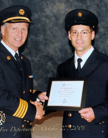 During my 10-year career with CFD I spent most of my time on the trucks in the downtown core, with part of that time on the High Angle Rescue Team. During a period of health challenges, I left the trucks and trained in Fire Inspections and Fire Investigations. Although my plan at that point was to become a Fire Investigator, I chose to work as a Fire Inspector instead because of the prolonged exposures to "off-gassing" toxins during the fire investigation process. I eventually rehabilitated myself enough to spend the last two years of my career back on the trucks as an Acting Senior Firefighter with training and experience as a Fire Safety Codes Officer (FSCO-level II).